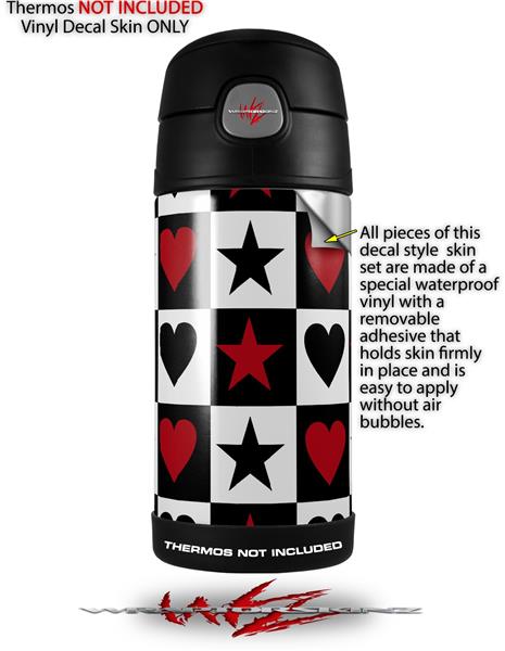 Skin Decal Wrap for Thermos Funtainer 12oz Bottle Hearts and Stars Red (BOTTLE NOT INCLUDED) by WraptorSkinz