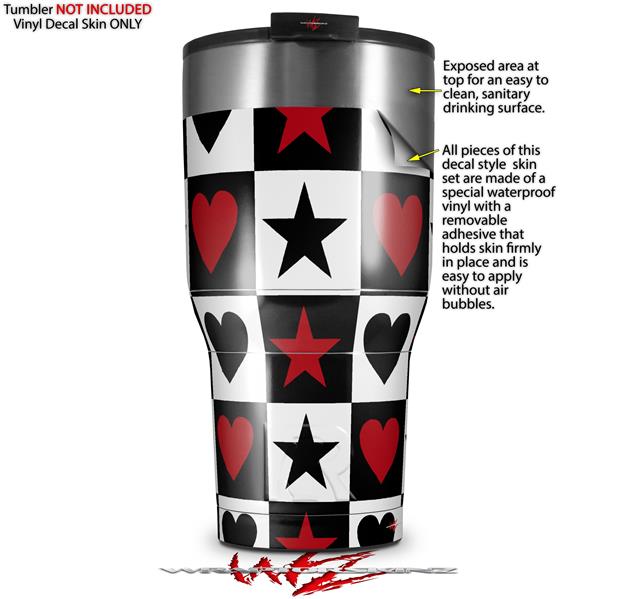 WraptorSkinz Skin Wrap compatible with 2017 and newer RTIC Tumblers 30oz Hearts and Stars Red (TUMBLER NOT INCLUDED)