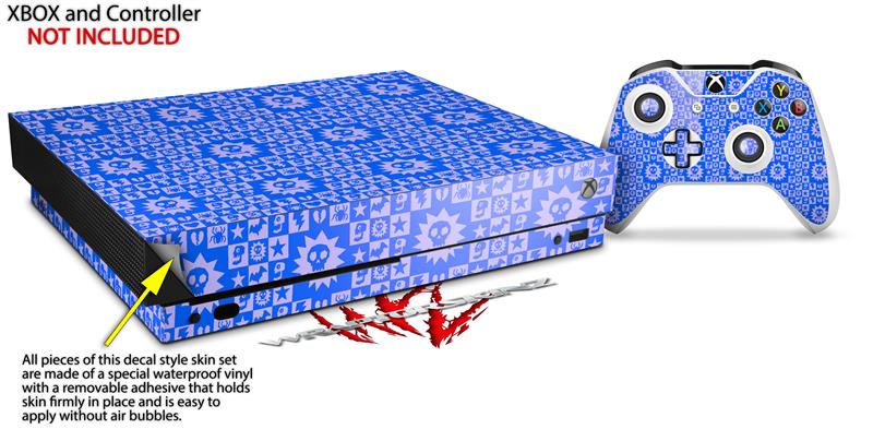 Skin Wrap for XBOX One X Console and Controller Gothic Punk Pattern Blue
