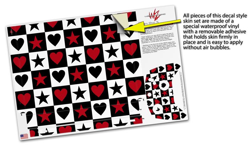 Skin Wrap for XBOX One X Console and Controller Hearts and Stars Red