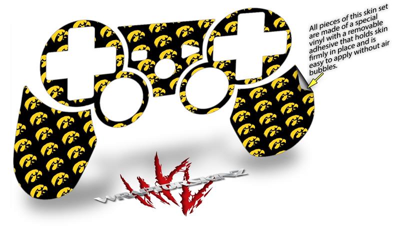 Sony PS3 Controller Decal Style Skin - Iowa Hawkeyes Tigerhawk Tiled 06 Gold on Black (CONTROLLER NOT INCLUDED)
