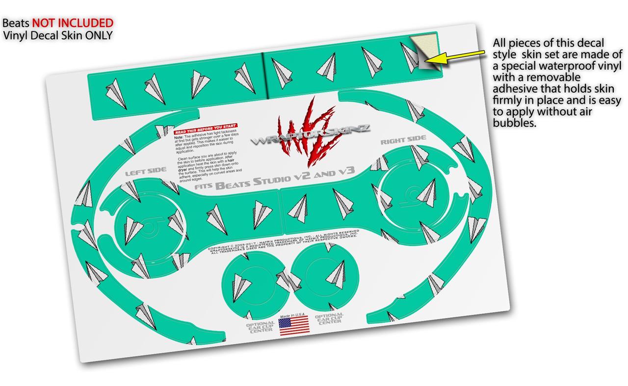 WraptorSkinz Skin Decal Wrap compatible with Beats Studio 2 and 3 Wired and Wireless Headphones Paper Planes Turquoise Skin Only (HEADPHONES NOT INCLUDED)