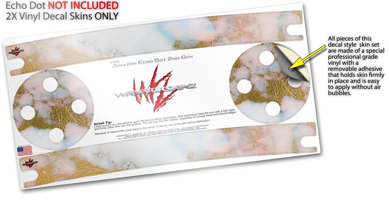 Skin Wrap Decal Set 2 Pack for Amazon Echo Dot 2 - Pastel Gilded Marble (2nd Generation ONLY - Echo NOT INCLUDED)