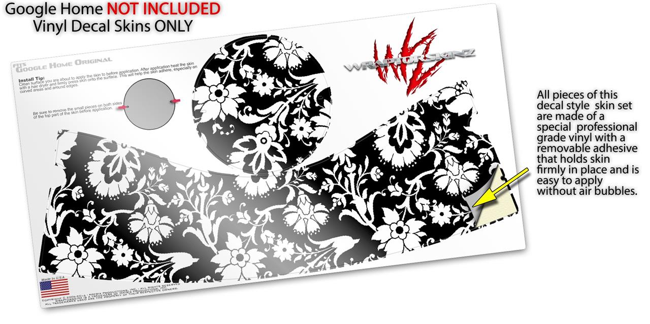 Decal Style Skin Wrap for Google Home Original - Black and White Flower (GOOGLE HOME NOT INCLUDED)
