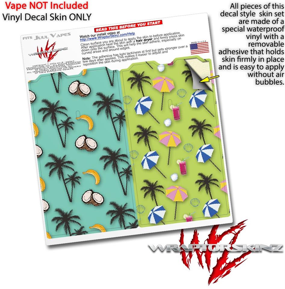 Skin Decal Wrap 2 Pack for Juul Vapes Coconuts Palm Trees and Bananas Seafoam Green JUUL NOT INCLUDED