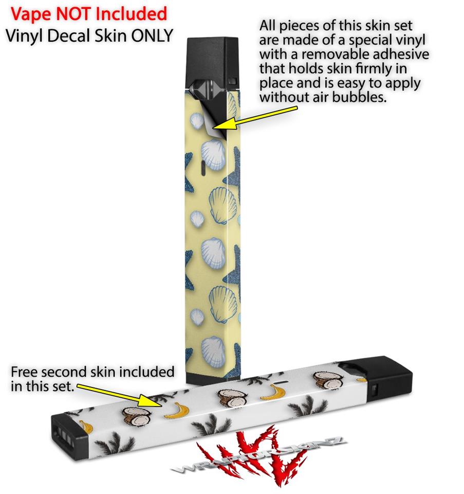 Skin Decal Wrap 2 Pack for Juul Vapes Starfish and Sea Shells Yellow Sunshine JUUL NOT INCLUDED