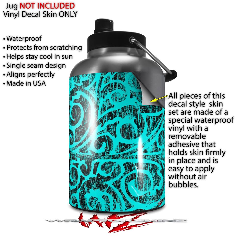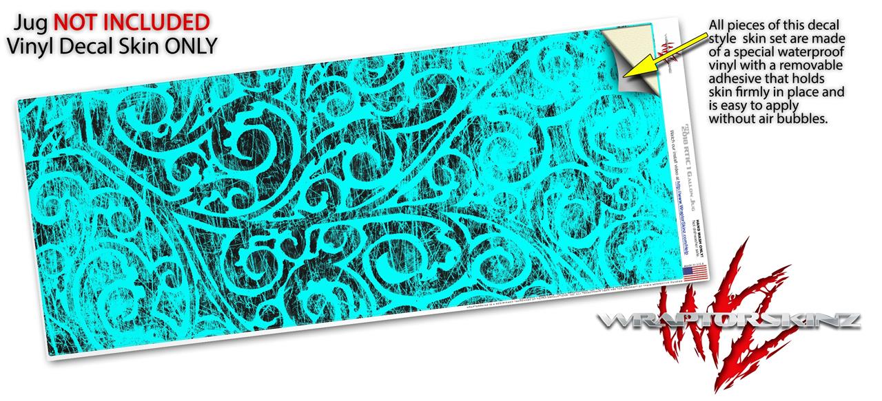 Skin Decal Wrap for 2017 RTIC One Gallon Jug Folder Doodles Neon Teal (Jug NOT INCLUDED) by WraptorSkinz