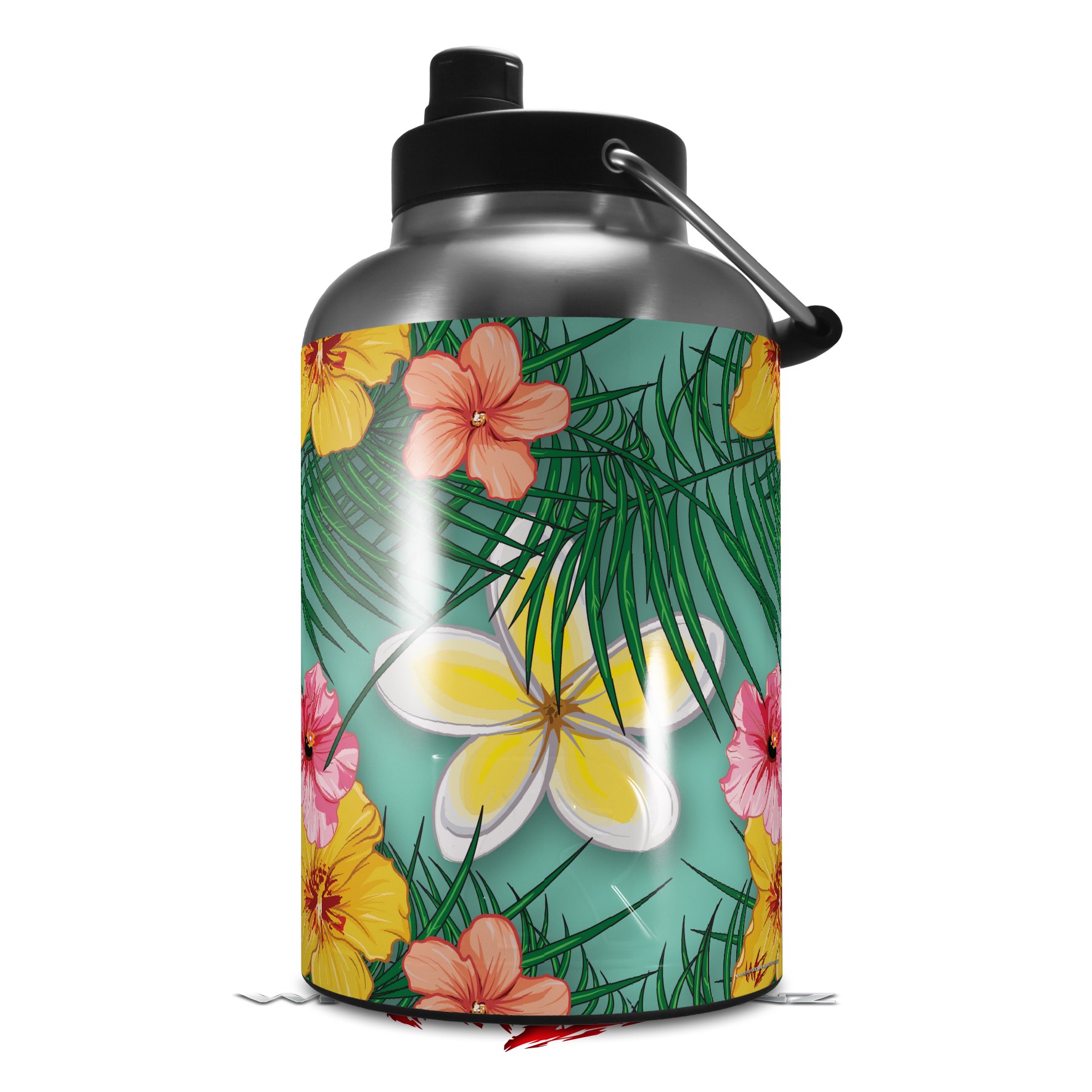 Skin Decal Wrap for 2017 RTIC One Gallon Jug Beach Flowers 02 Seafoam Green (Jug NOT INCLUDED) by WraptorSkinz