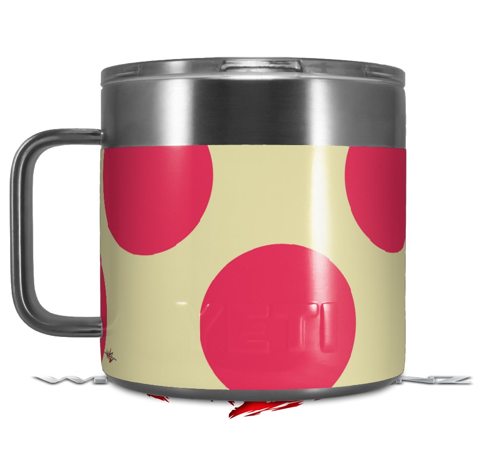 Skin Decal Wrap for Yeti Coffee Mug 14oz Kearas Polka Dots Pink On Cream - 14 oz CUP NOT INCLUDED by WraptorSkinz