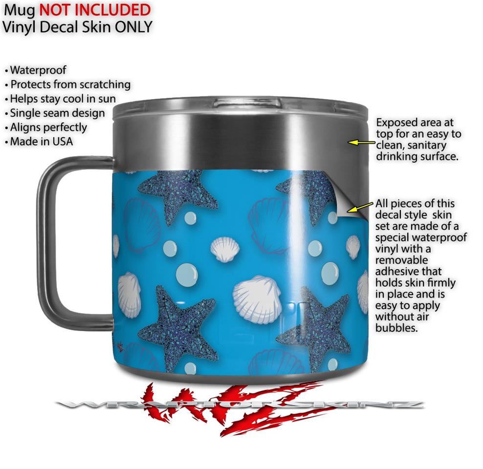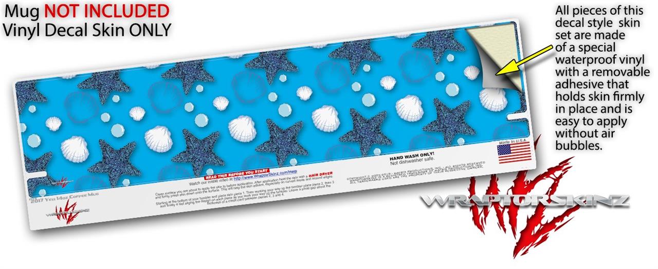 Skin Decal Wrap for Yeti Coffee Mug 14oz Starfish and Sea Shells Blue Medium - 14 oz CUP NOT INCLUDED by WraptorSkinz