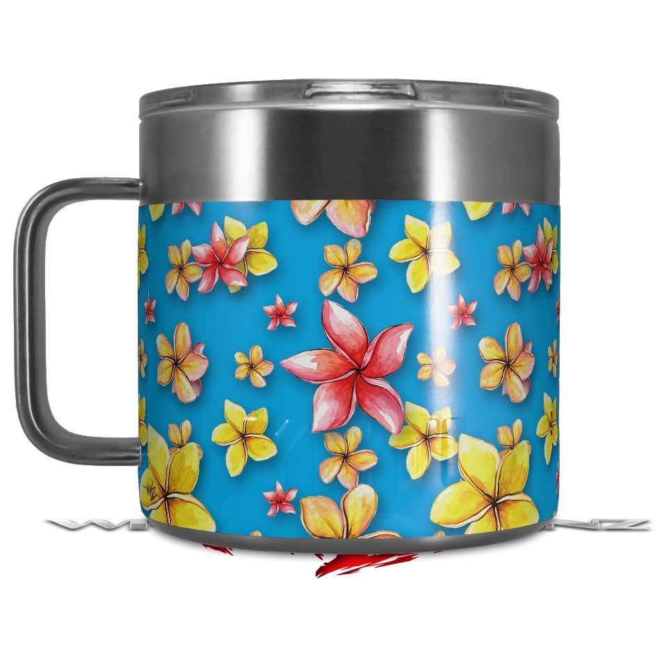 Skin Decal Wrap for Yeti Coffee Mug 14oz Beach Flowers Blue Medium - 14 oz CUP NOT INCLUDED by WraptorSkinz