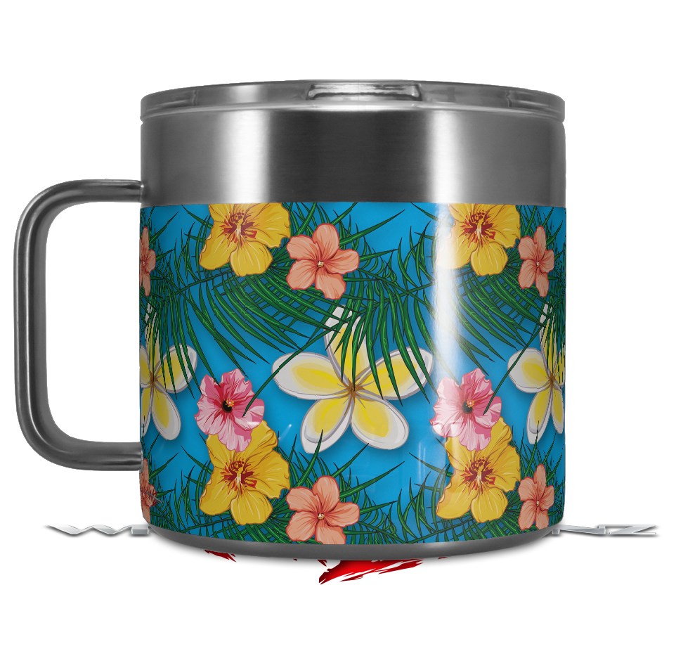 Skin Decal Wrap for Yeti Coffee Mug 14oz Beach Flowers 02 Blue Medium - 14 oz CUP NOT INCLUDED by WraptorSkinz