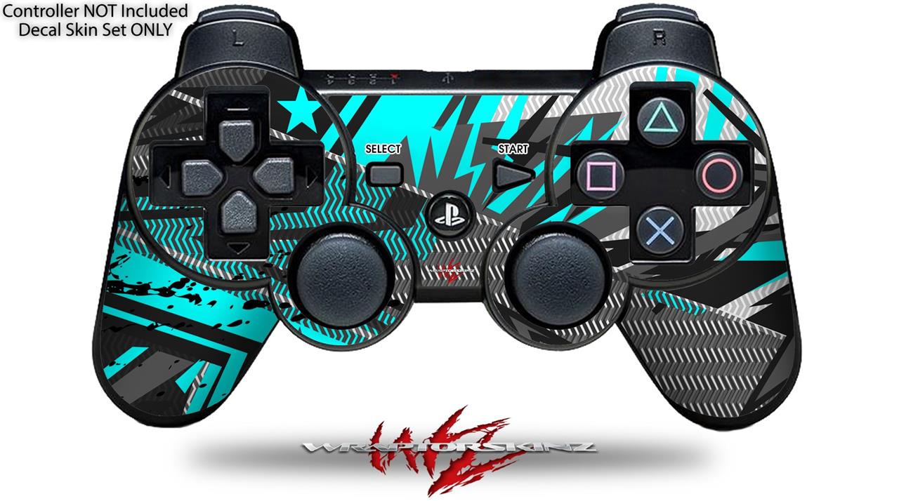 Sony PS3 Controller Decal Style Skin - Baja 0032 Neon Teal (CONTROLLER NOT INCLUDED)