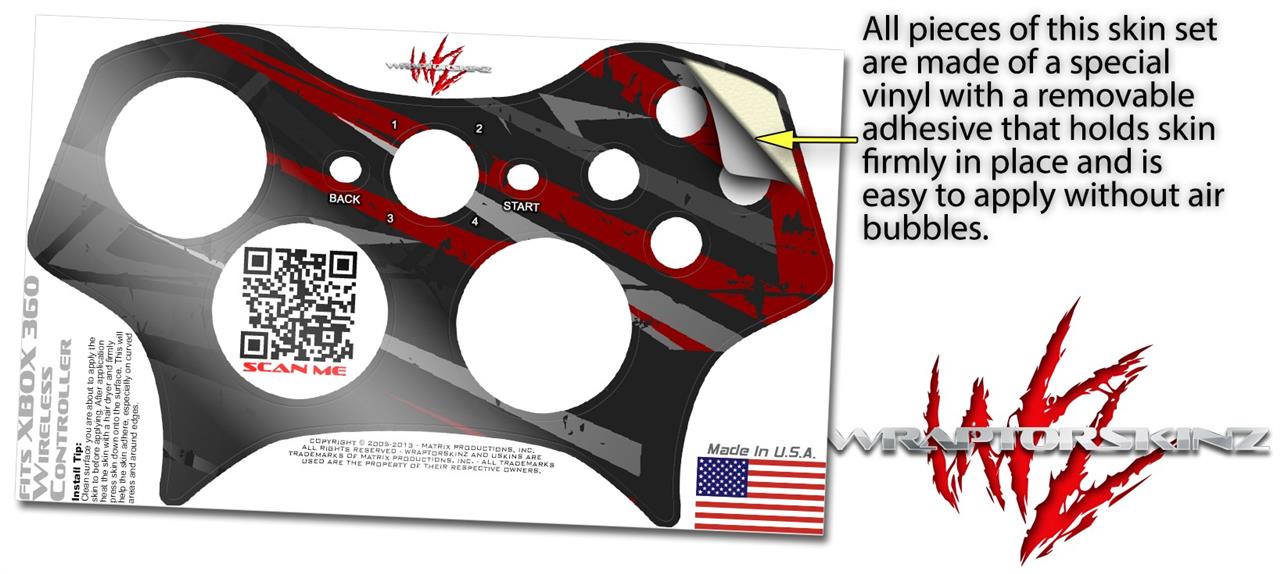 XBOX 360 Wireless Controller Decal Style Skin - Baja 0014 Red Dark (CONTROLLER NOT INCLUDED)