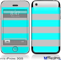 iPhone 3GS Skin - Psycho Stripes Neon Teal and Gray