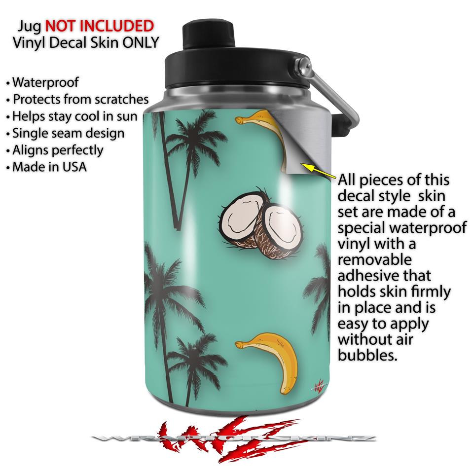 Skin Decal Wrap for Yeti 1 Gallon Jug Coconuts Palm Trees and Bananas Seafoam Green - JUG NOT INCLUDED by WraptorSkinz