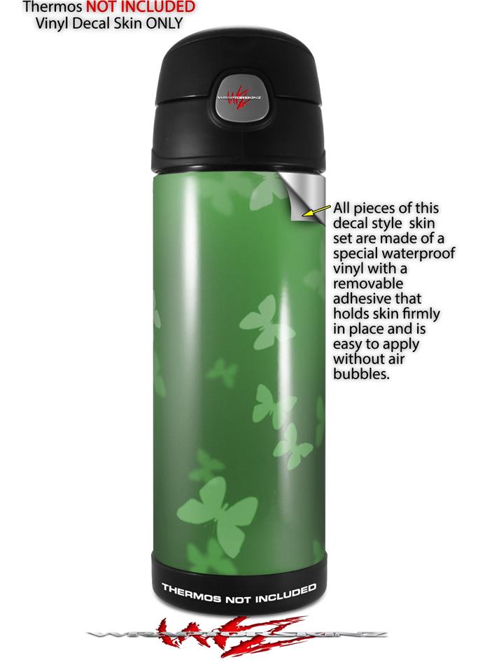 Skin Decal Wrap for Thermos Funtainer 16oz Bottle Bokeh Butterflies Green (BOTTLE NOT INCLUDED) by WraptorSkinz