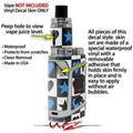 WraptorSkinz® skin wraps are printed using superb photo quality designs and vibrant colors printed with special fade resistant inks that last even in direct sun for years. WraptorSkinz are a composite of two layers of commercial grade materials. The bottom layer is a soft, flexible vinyl with a special removable adhesive that is easily positioned, applied without air bubbles. Next we print the bottom layer with UV protected, fade resistant inks that deliver superb photo quality designs in vibrant colors. Finally we bond a professional grade laminate over the entire skin adding a glossy protective finish. This product is not affiliated with or endorsed by the Smok brand.