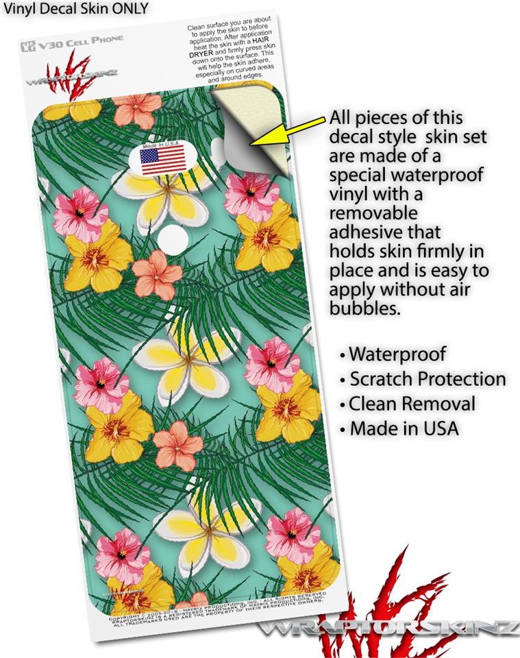 Skin Decal Wrap for LG V30 Beach Flowers 02 Seafoam Green