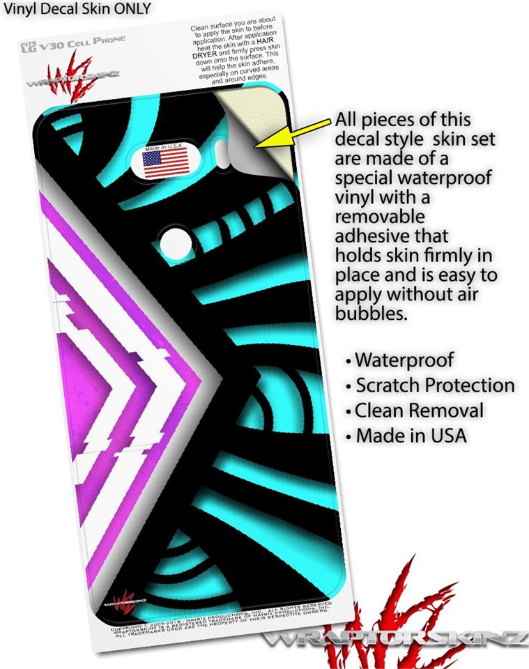 Skin Decal Wrap for LG V30 Black Waves Neon Teal Hot Pink
