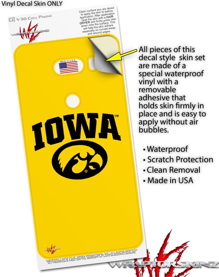 Skin Decal Wrap for LG V30 Iowa Hawkeyes Tigerhawk Oval 01 Black on Gold
