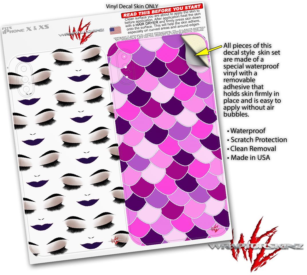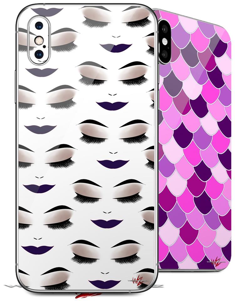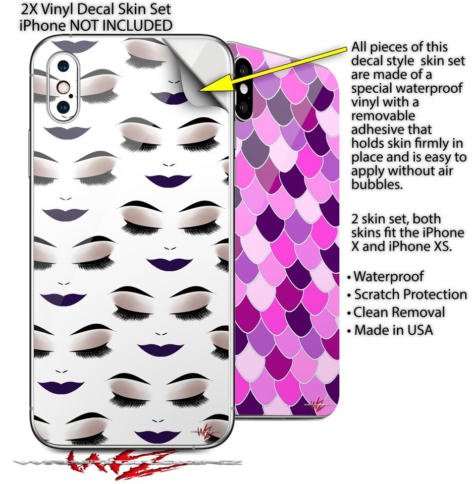 2 Decal style Skin Wraps set for Apple iPhone X and XS Face Dark Purple