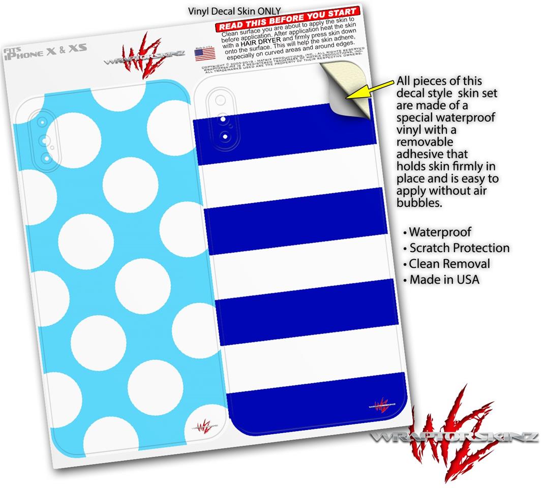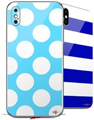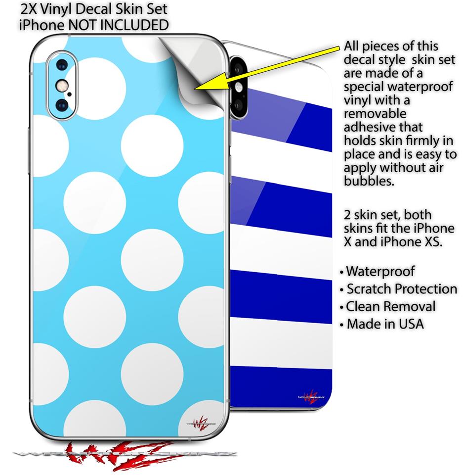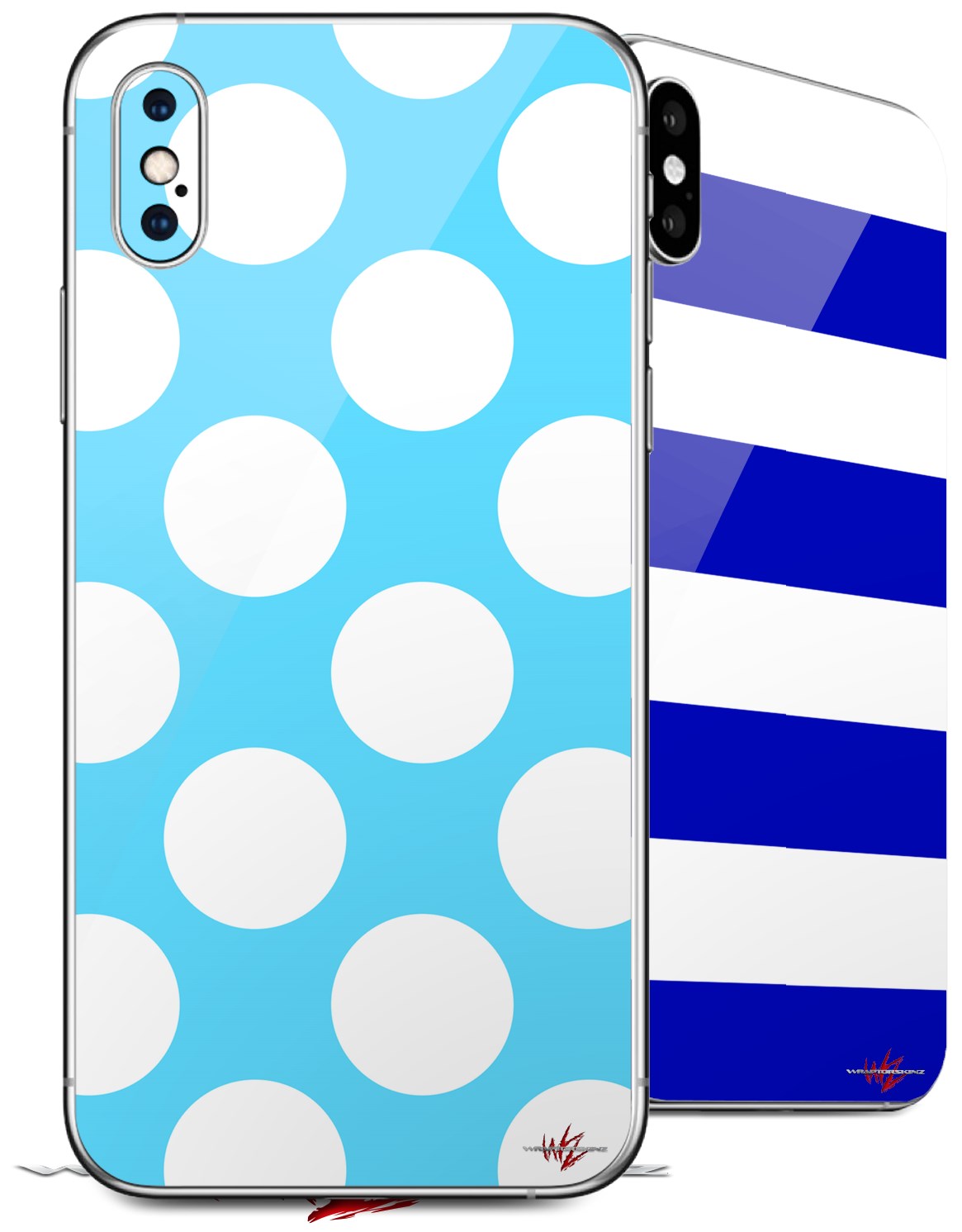 2 Decal style Skin Wraps set for Apple iPhone X and XS Kearas Polka Dots White And Blue
