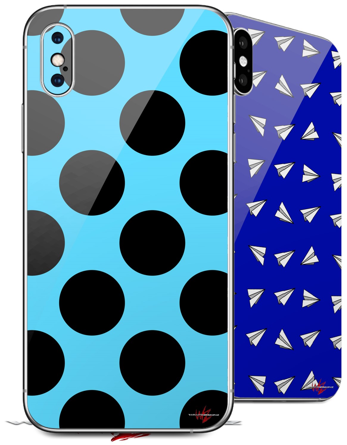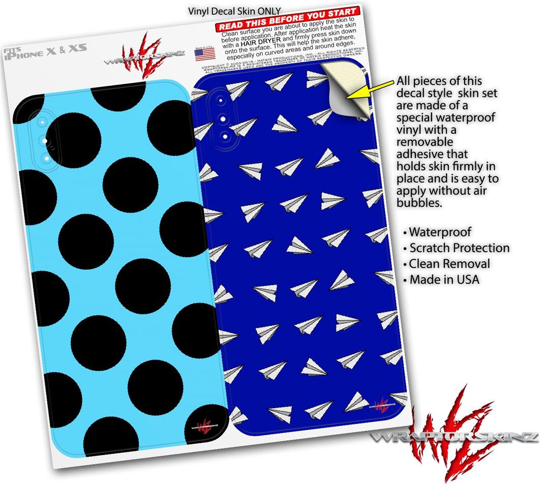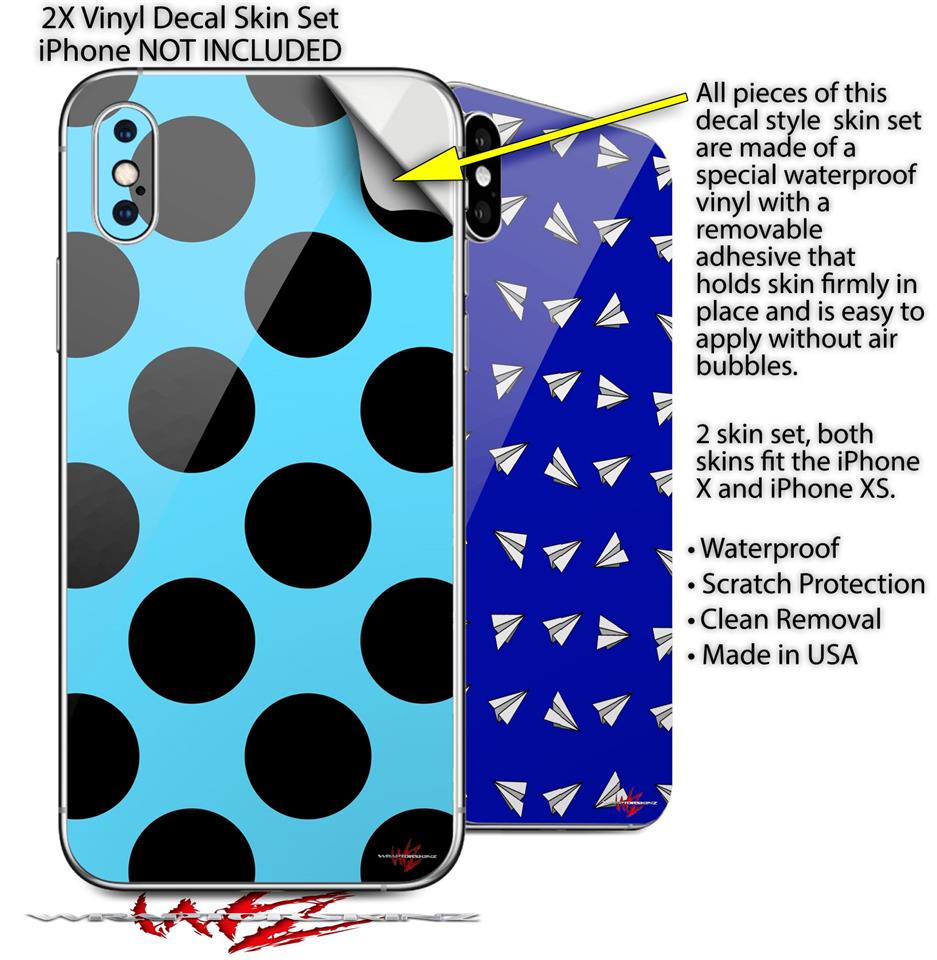 2 Decal style Skin Wraps set for Apple iPhone X and XS Kearas Polka Dots Black And Blue