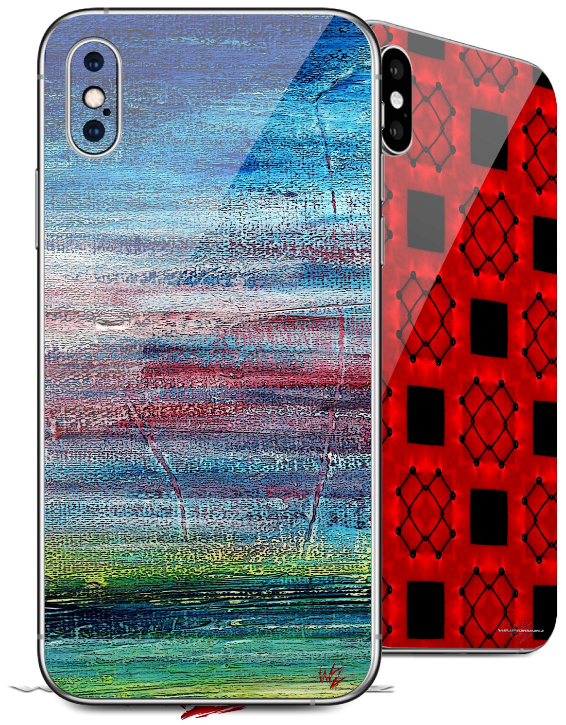 2 Decal style Skin Wraps set for Apple iPhone X and XS Landscape Abstract RedSky