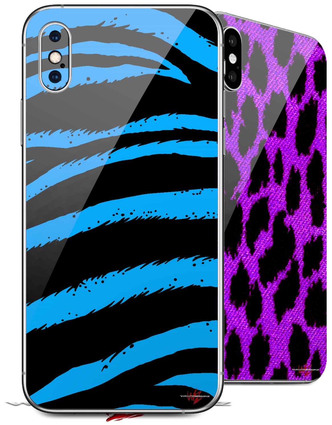 2 Decal style Skin Wraps set for Apple iPhone X and XS Zebra Blue