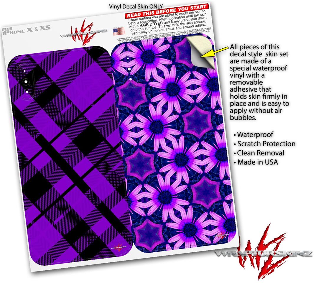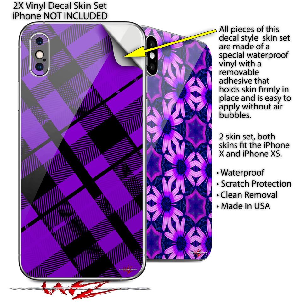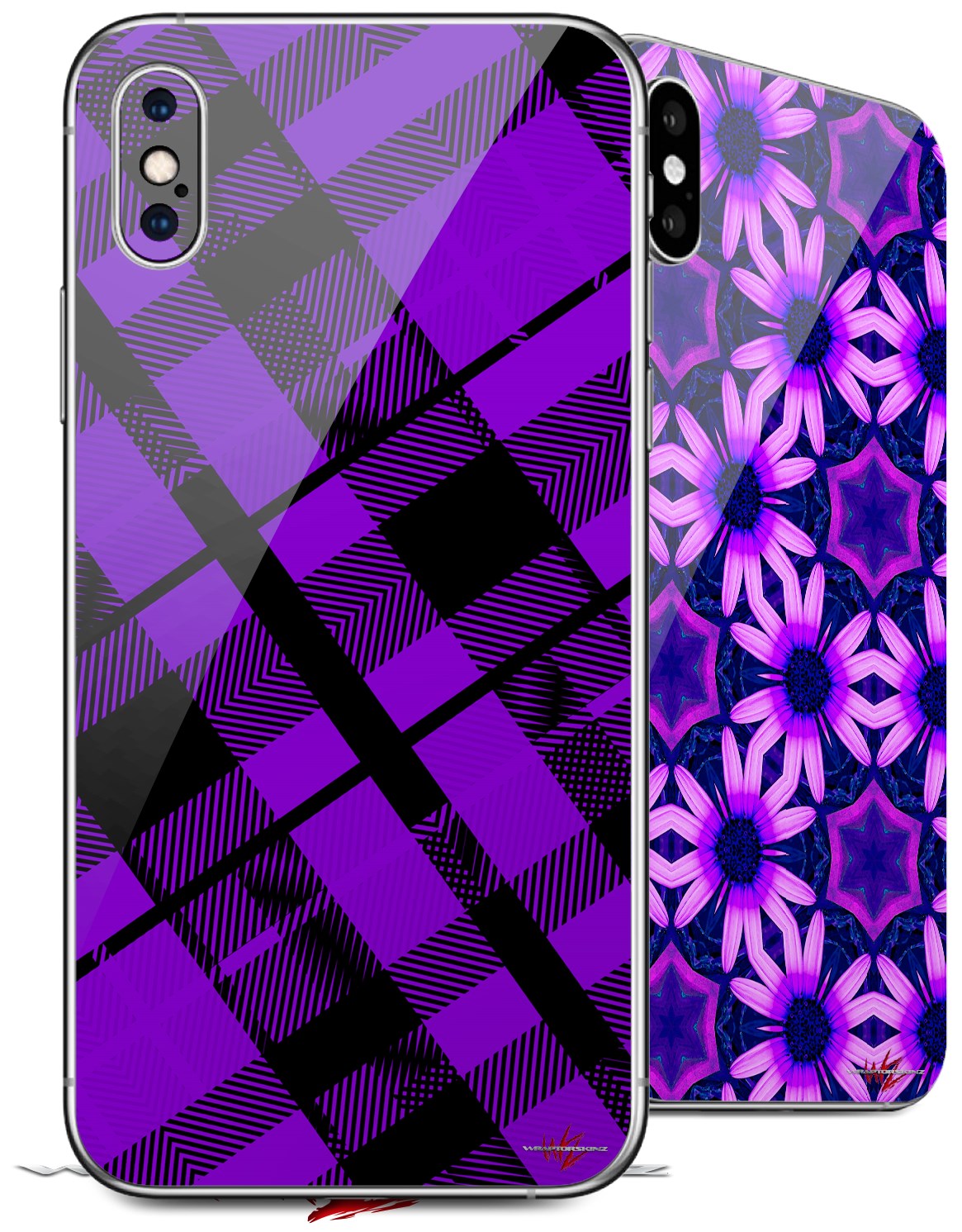 2 Decal style Skin Wraps set for Apple iPhone X and XS Purple Plaid