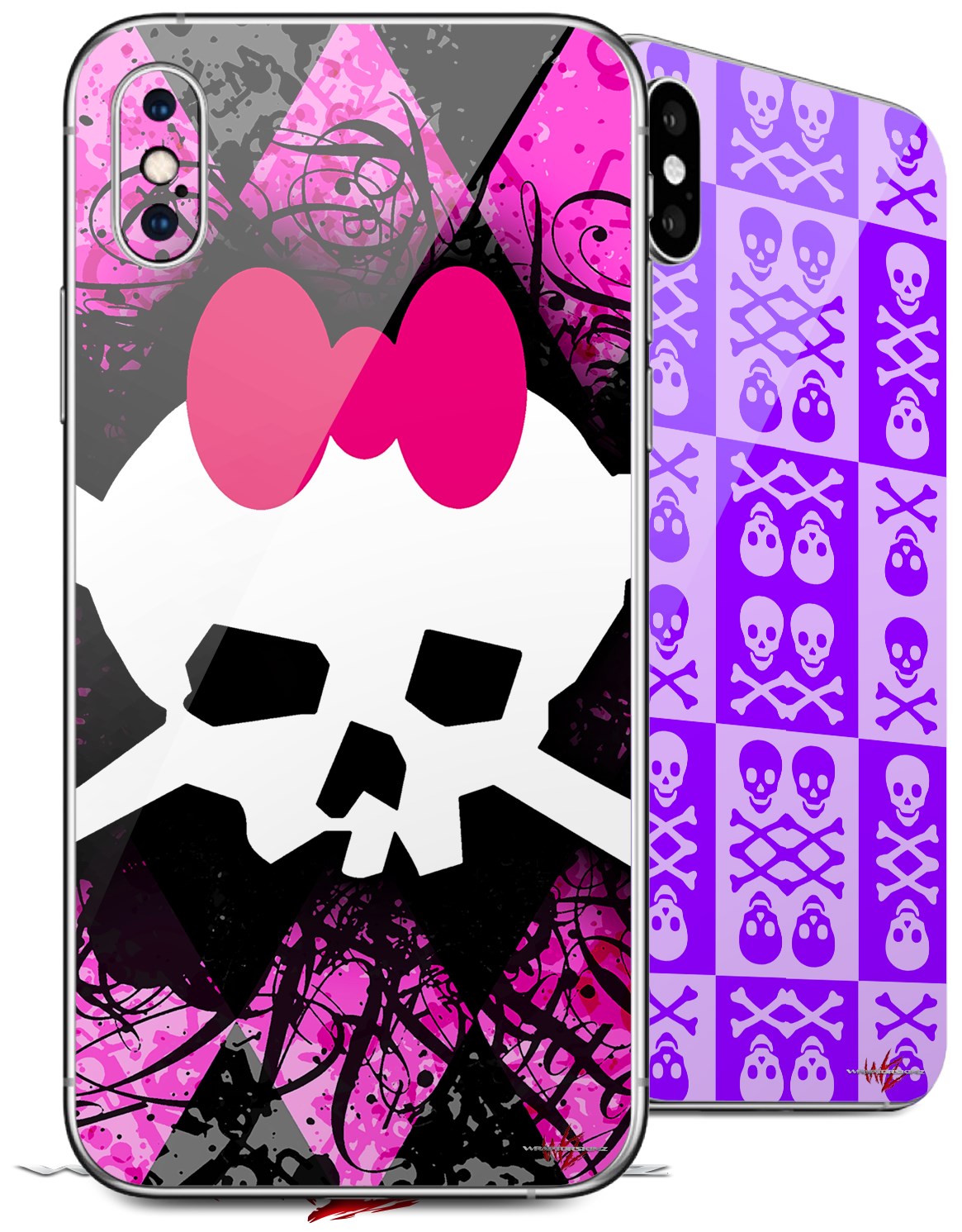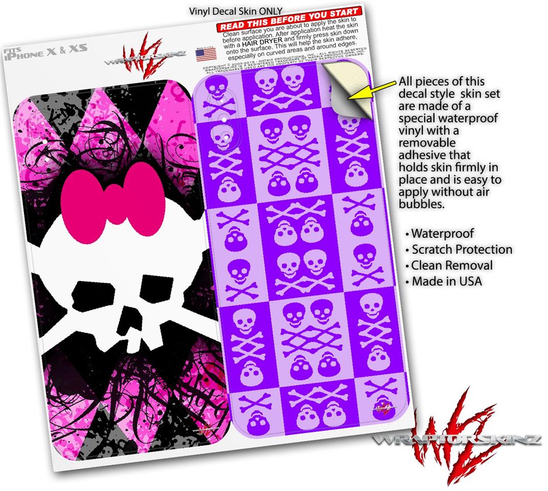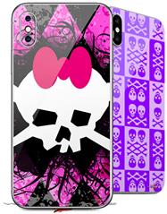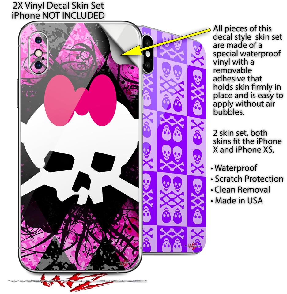 2 Decal style Skin Wraps set for Apple iPhone X and XS Pink Diamond Skull