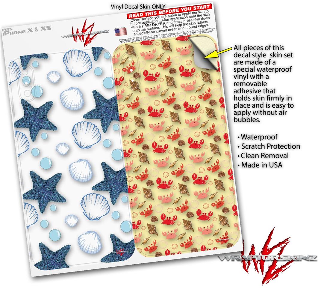 2 Decal style Skin Wraps set for Apple iPhone X and XS Starfish and Sea Shells White