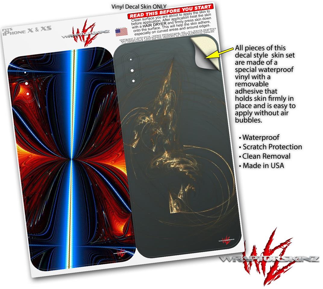 2 Decal style Skin Wraps set for Apple iPhone X and XS Quasar Fire