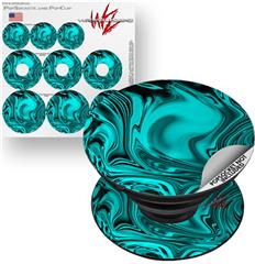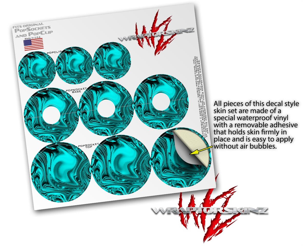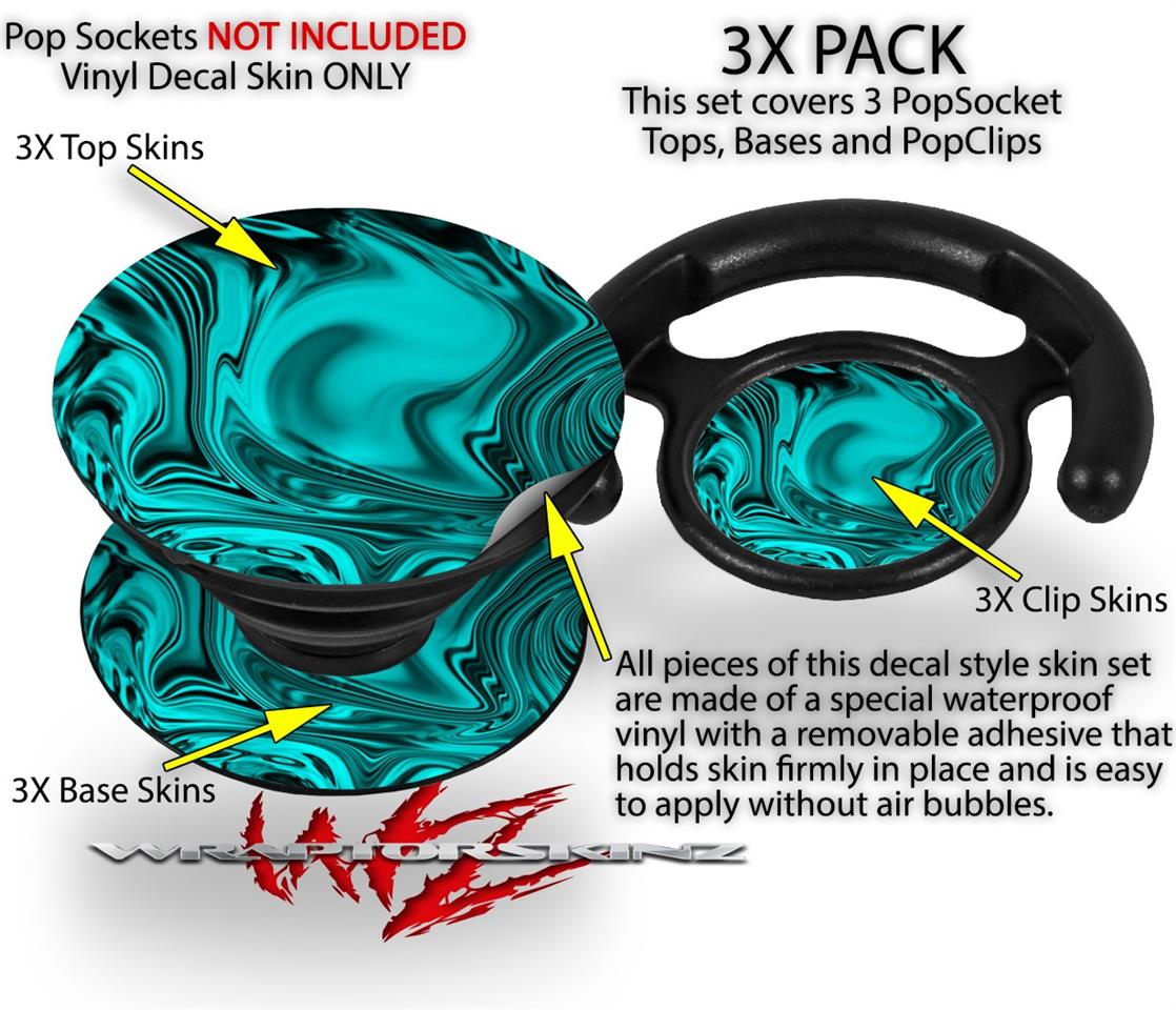 Decal Style Vinyl Skin Wrap 3 Pack compatible with PopSockets Liquid Metal Chrome Neon Teal (POPSOCKET NOT INCLUDED)