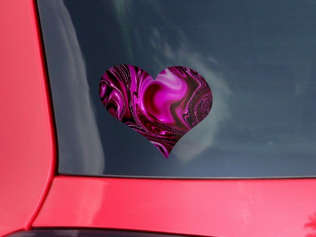 Liquid Metal Chrome Hot Pink Fuchsia - I Heart Love Car Window Decal 6.5 x 5.5 inches