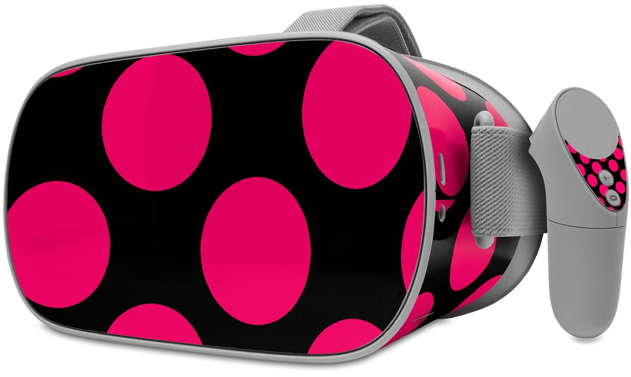 Decal style Skin Wrap compatible with Oculus Go Headset - Kearas Polka Dots Pink On Black (OCULUS NOT INCLUDED)