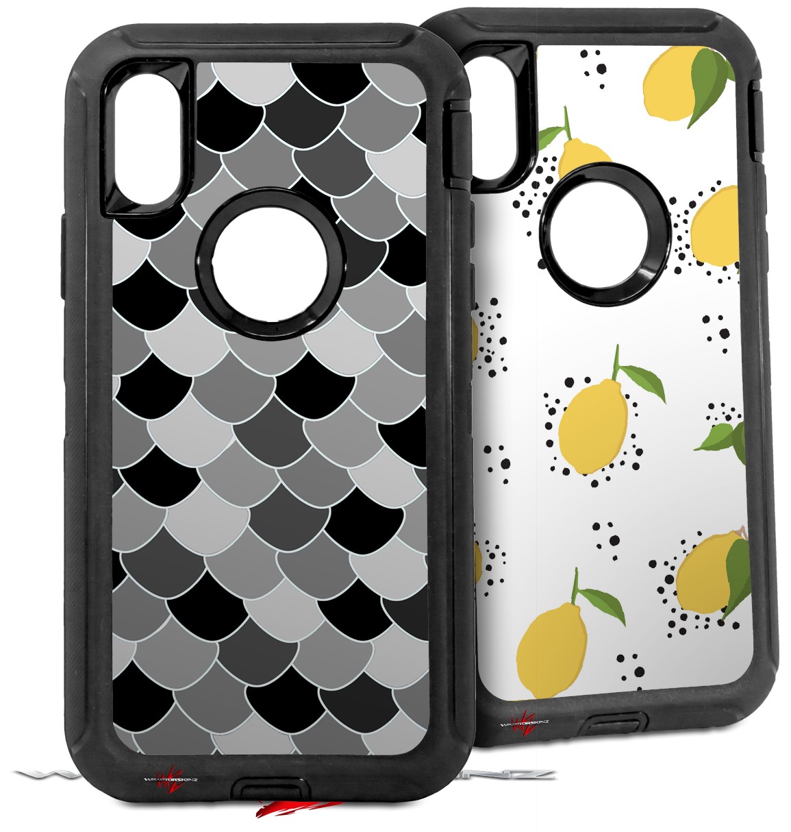 2x Decal style Skin Wrap Set compatible with Otterbox Defender iPhone X and Xs Case - Scales Black (CASE NOT INCLUDED)