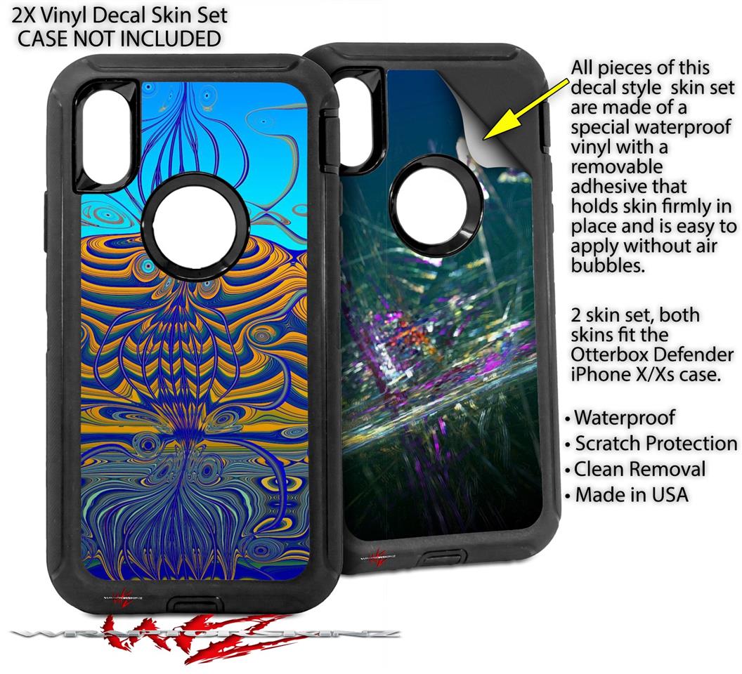 2x Decal style Skin Wrap Set compatible with Otterbox Defender iPhone X and Xs Case - Dancing Lilies (CASE NOT INCLUDED)
