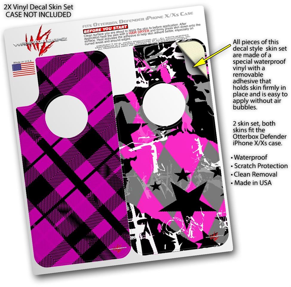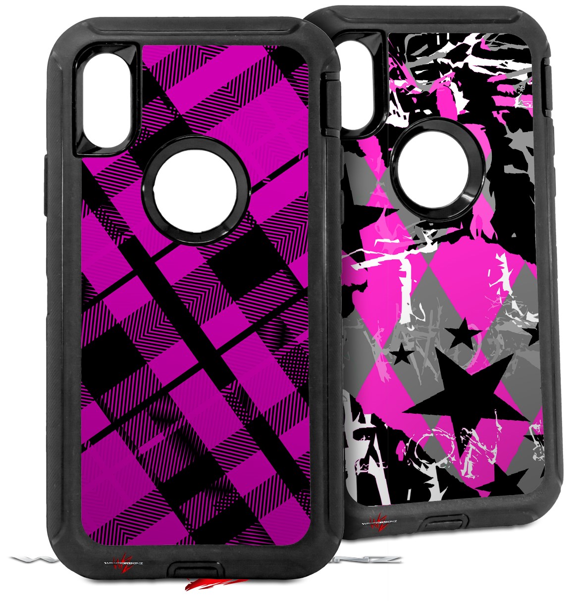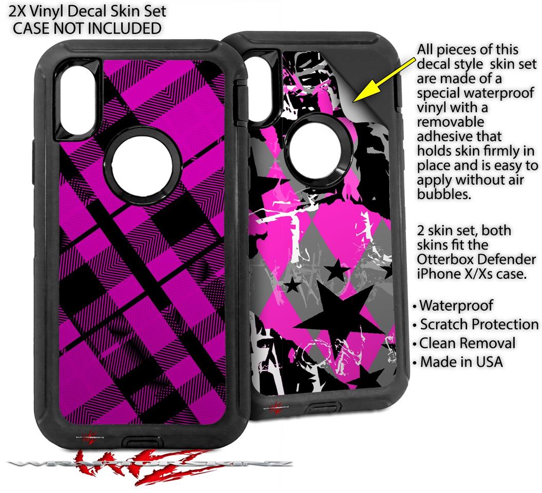2x Decal style Skin Wrap Set compatible with Otterbox Defender iPhone X and Xs Case - Pink Plaid (CASE NOT INCLUDED)