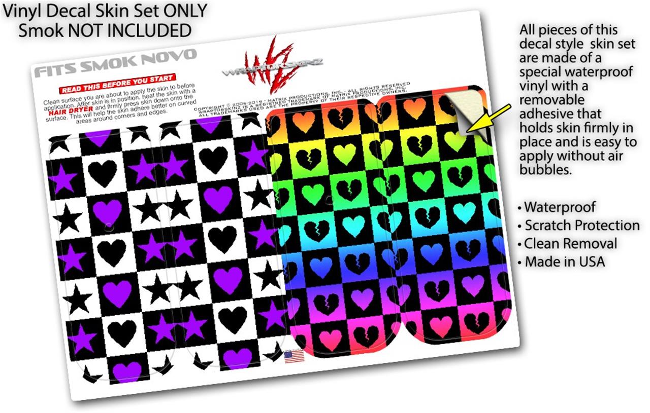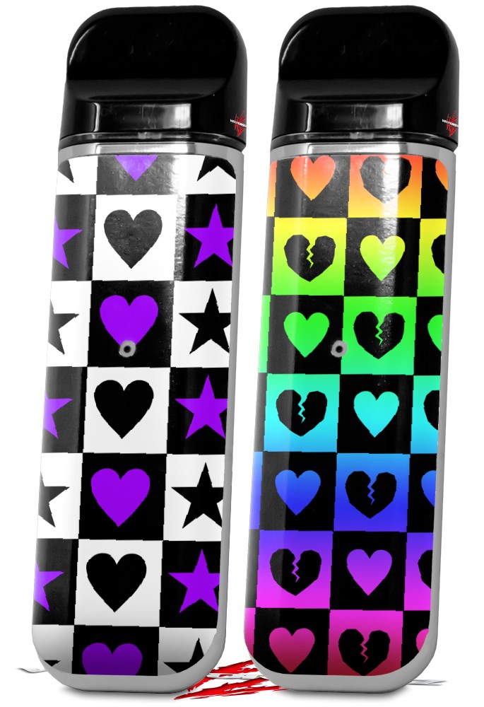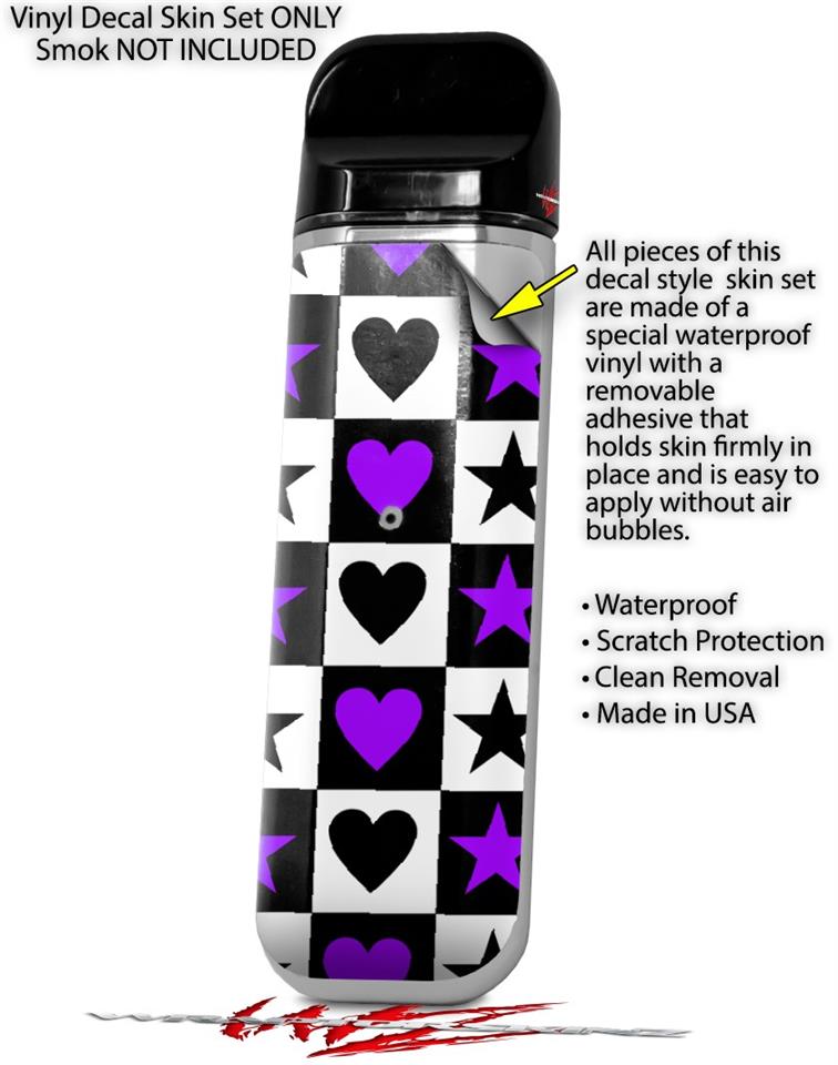 Skin Decal Wrap 2 Pack for Smok Novo v1 Purple Hearts And Stars VAPE NOT INCLUDED
