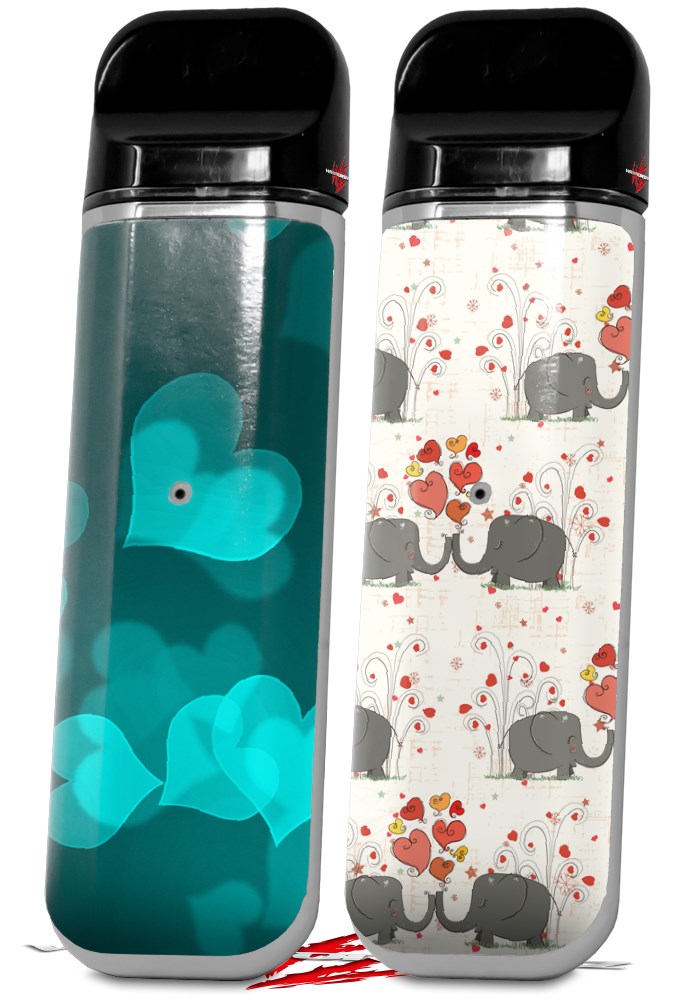 Skin Decal Wrap 2 Pack for Smok Novo v1 Bokeh Hearts Neon Teal VAPE NOT INCLUDED