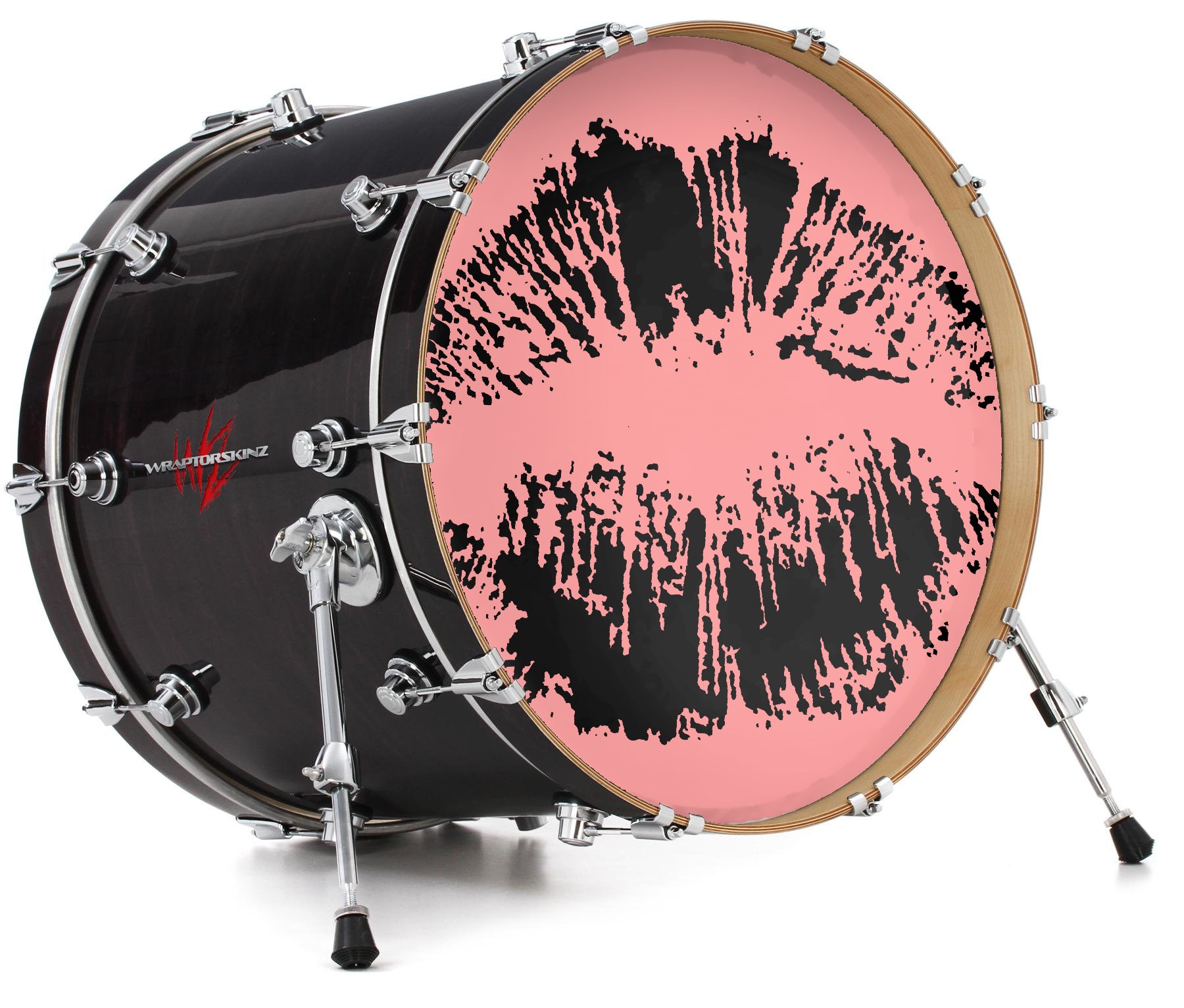 Vinyl Decal Skin Wrap for 22" Bass Kick Drum Head Big Kiss Black on Pink - DRUM HEAD NOT INCLUDED