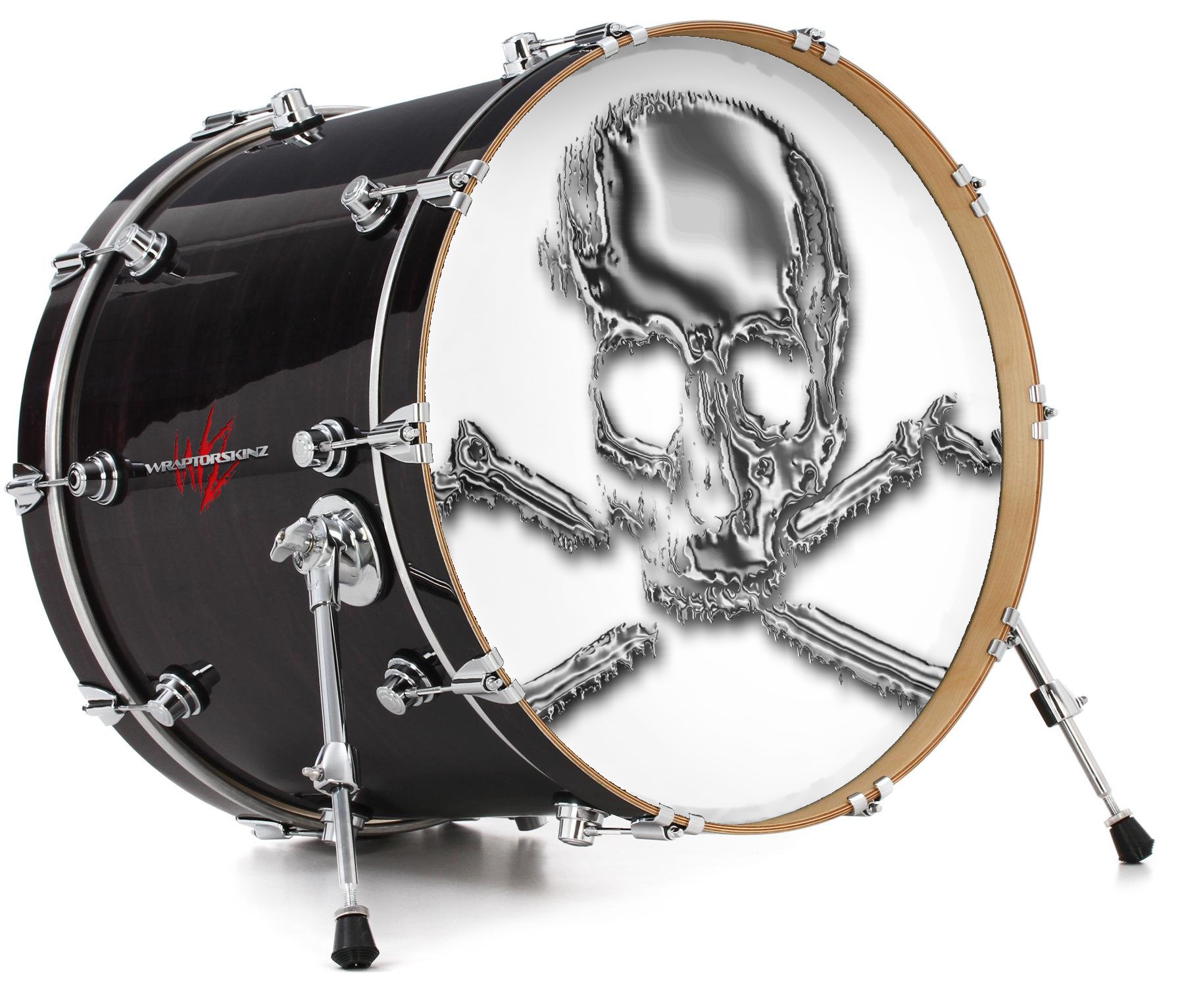 Vinyl Decal Skin Wrap for 22" Bass Kick Drum Head Chrome Skull on White - DRUM HEAD NOT INCLUDED