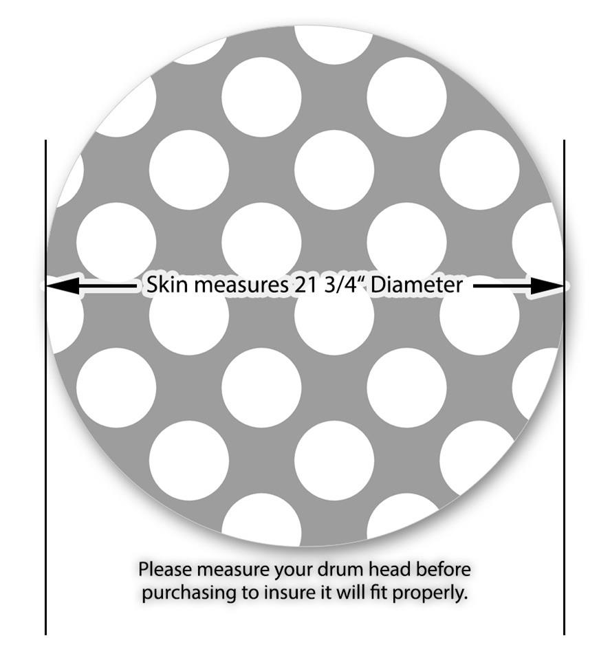 Vinyl Decal Skin Wrap for 22" Bass Kick Drum Head Kearas Polka Dots Whtie On Gray - DRUM HEAD NOT INCLUDED