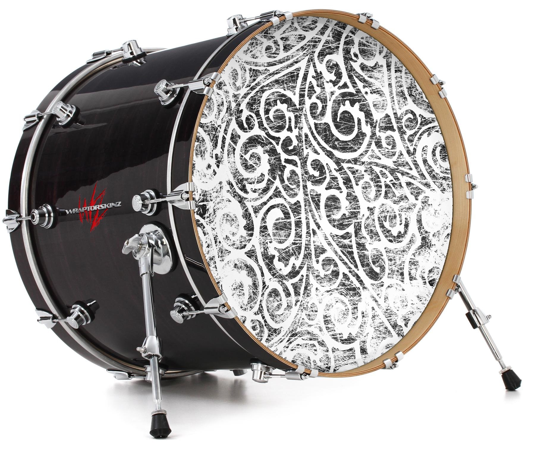 This design also available in other sizes. WraptorSkinz® skin wraps compatible with most kick drum heads. Printed using superb photo quality designs and vibrant colors printed with special fade resistant inks that last even in direct sun for years. WraptorSkinz are a composite three layer commercial grade materials vinyl. The bottom layer is a air release, grey block out removable adhesive that hides existing graphics on the drum head and is easily applied without air bubbles. The middle layer is a flexible vinyl printed with UV protected, fade resistant inks that deliver superb photo quality designs in vibrant colors. Finally, we bond a professional grade laminate over the entire skin adding a glossy protective finish.