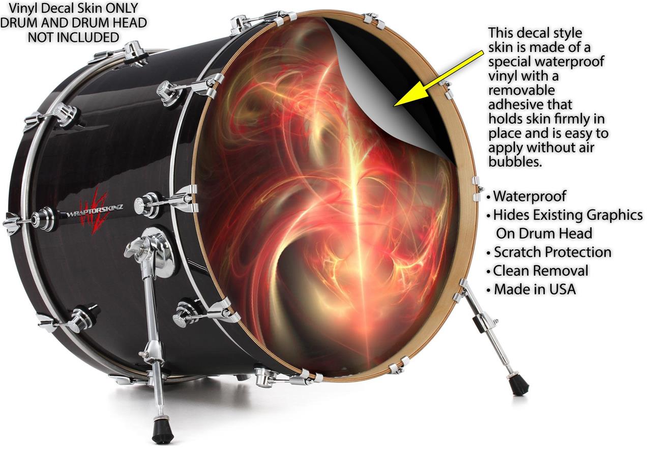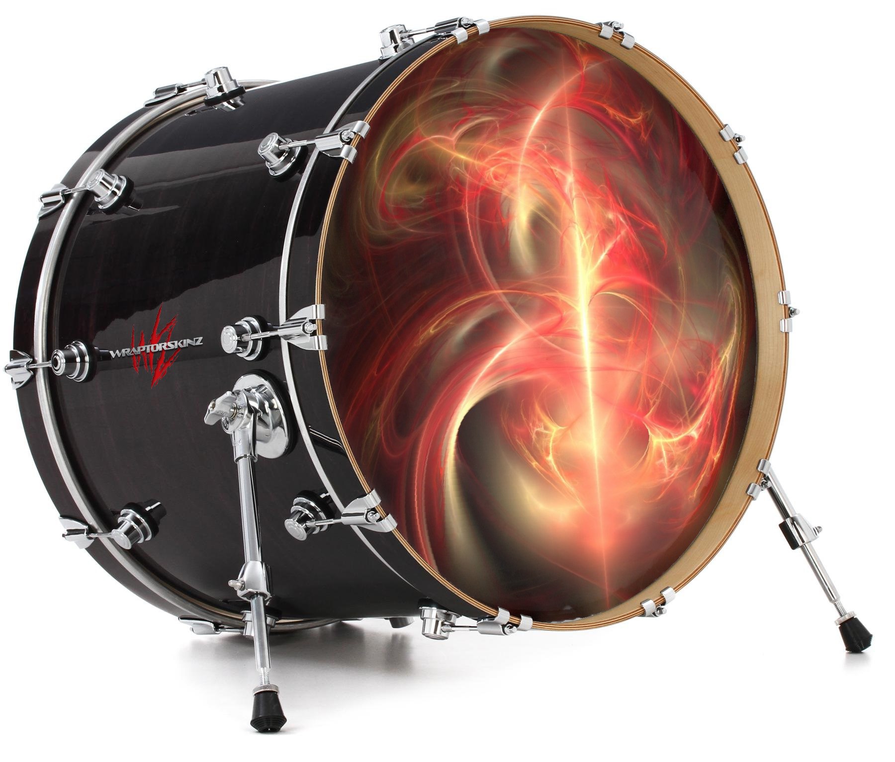 This design also available in other sizes. WraptorSkinz® skin wraps compatible with most kick drum heads. Printed using superb photo quality designs and vibrant colors printed with special fade resistant inks that last even in direct sun for years. WraptorSkinz are a composite three layer commercial grade materials vinyl. The bottom layer is a air release, grey block out removable adhesive that hides existing graphics on the drum head and is easily applied without air bubbles. The middle layer is a flexible vinyl printed with UV protected, fade resistant inks that deliver superb photo quality designs in vibrant colors. Finally, we bond a professional grade laminate over the entire skin adding a glossy protective finish.