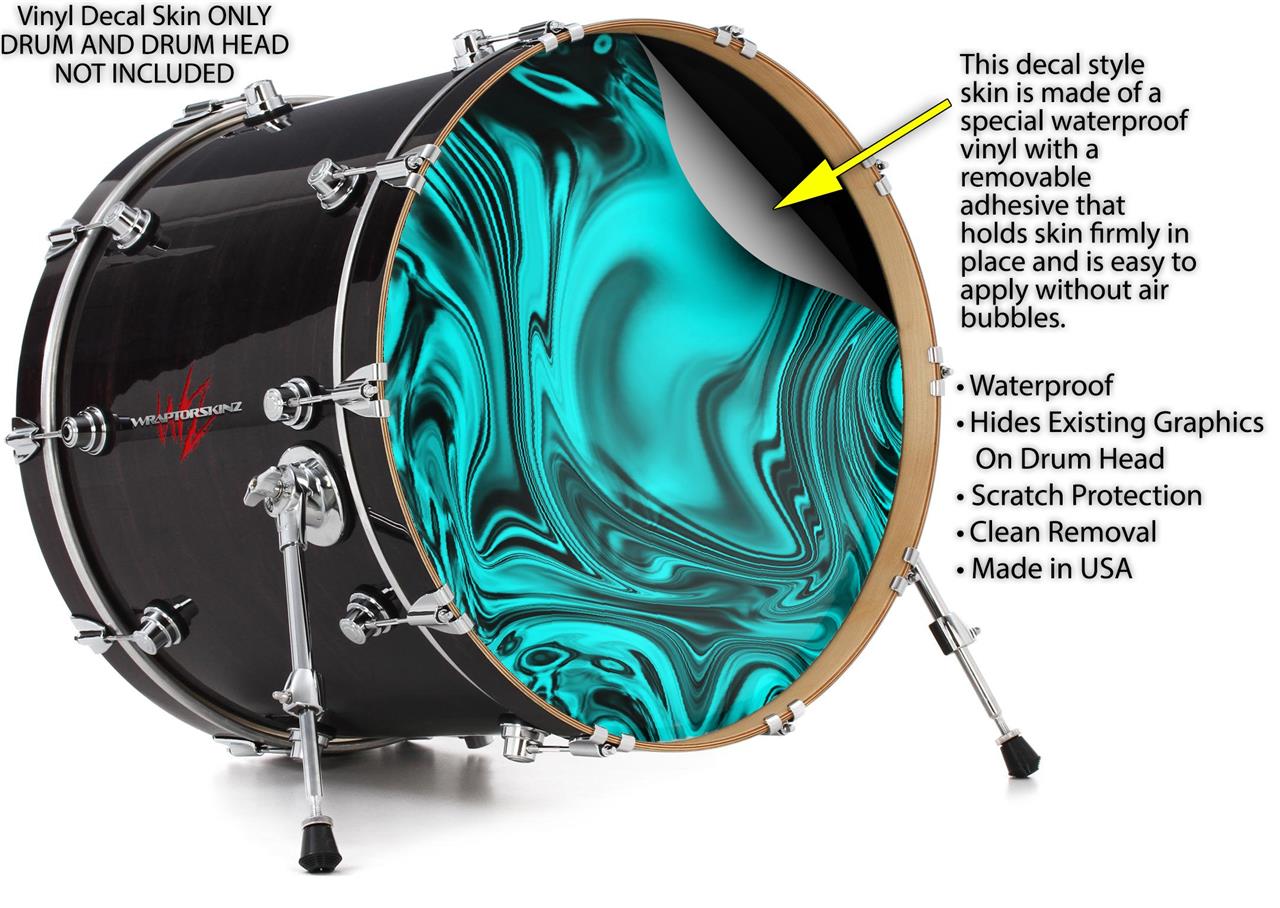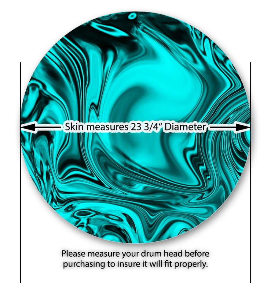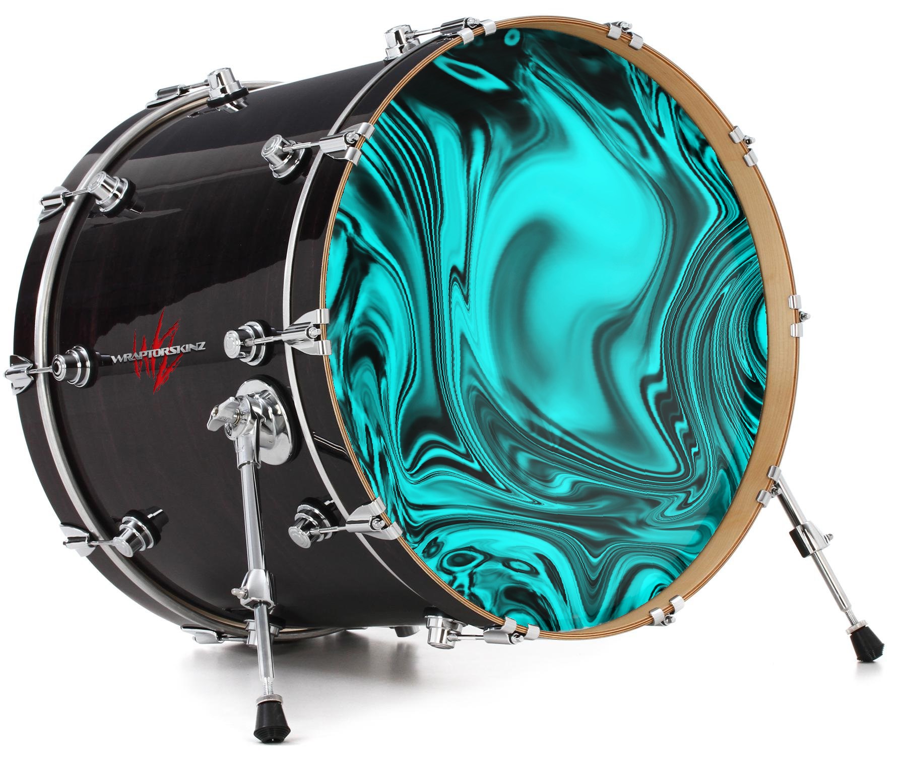 Decal Skin works with most 24" Bass Kick Drum Heads Liquid Metal Chrome Neon Teal - DRUM HEAD NOT INCLUDED