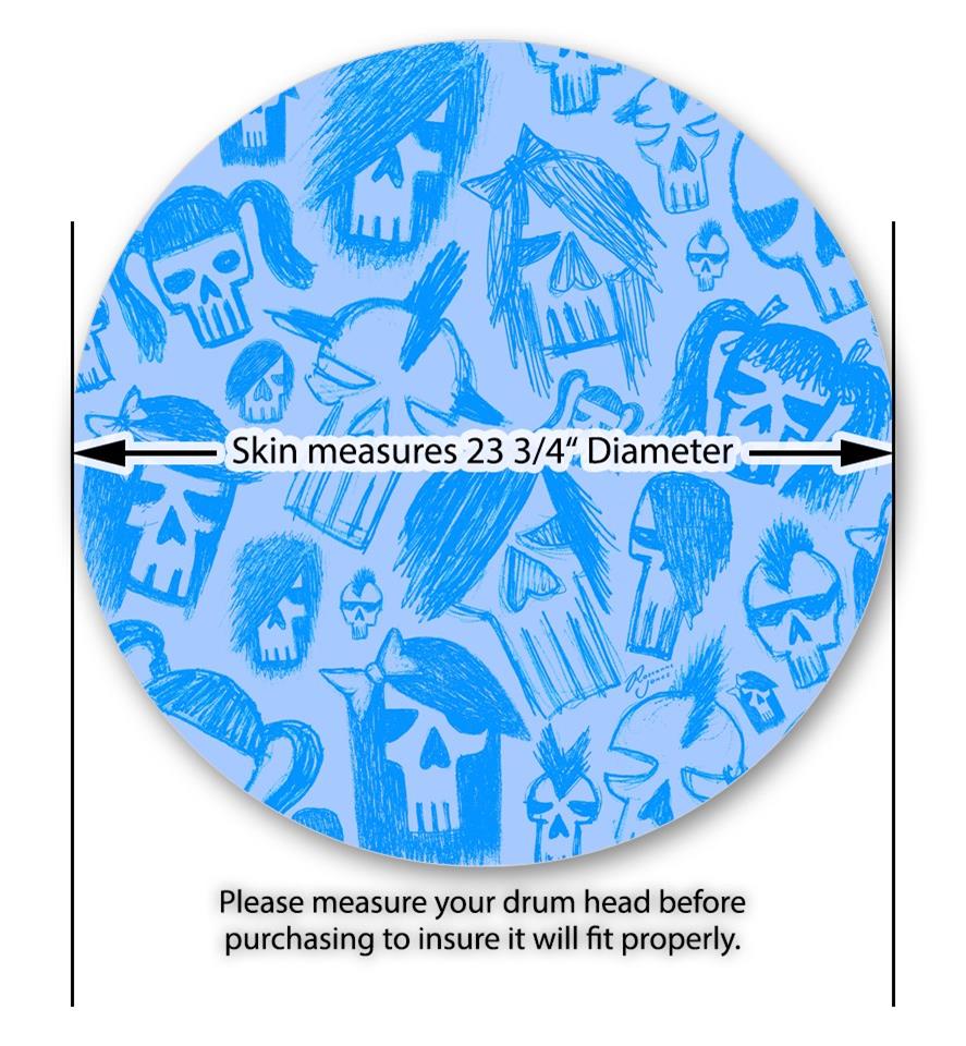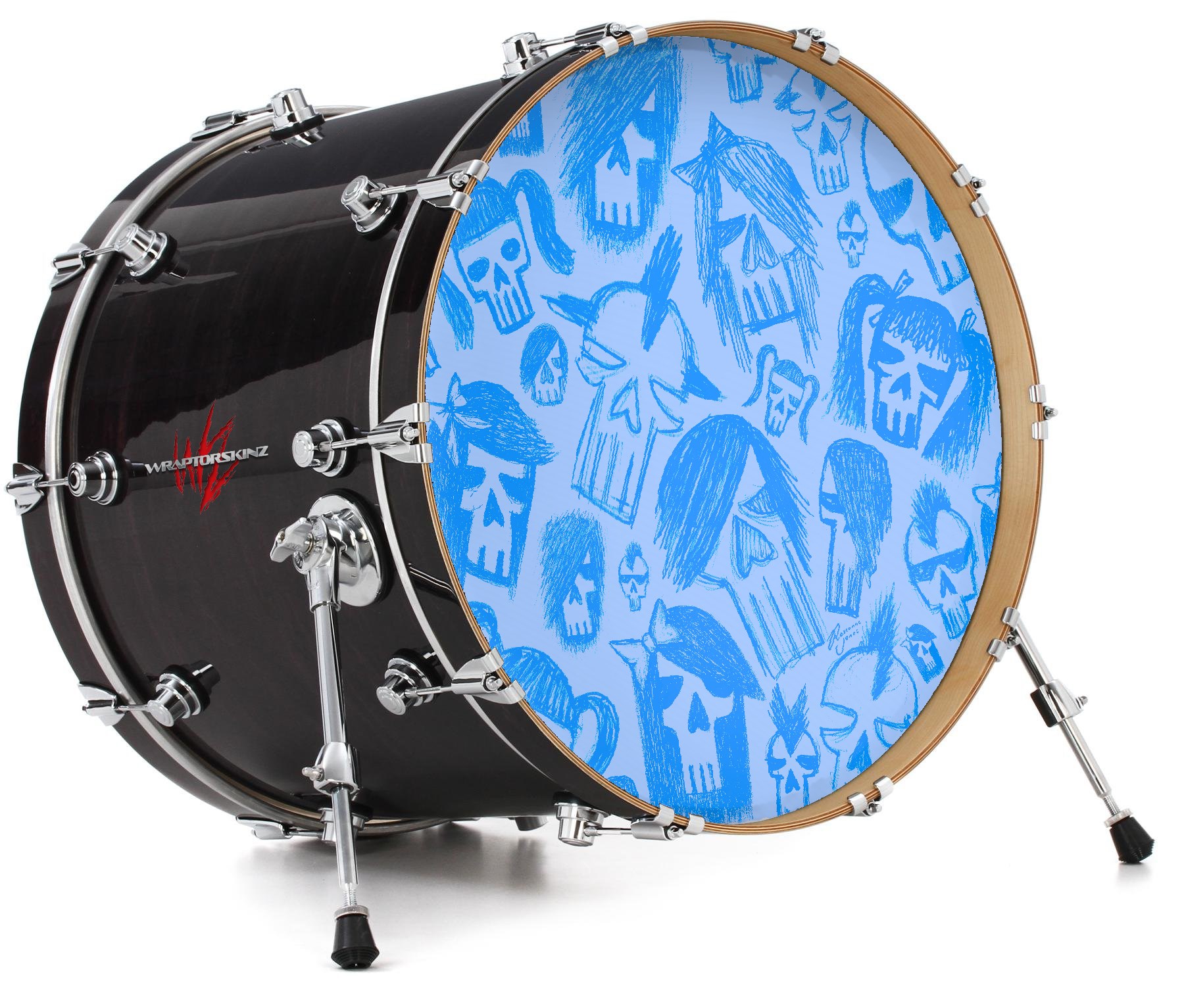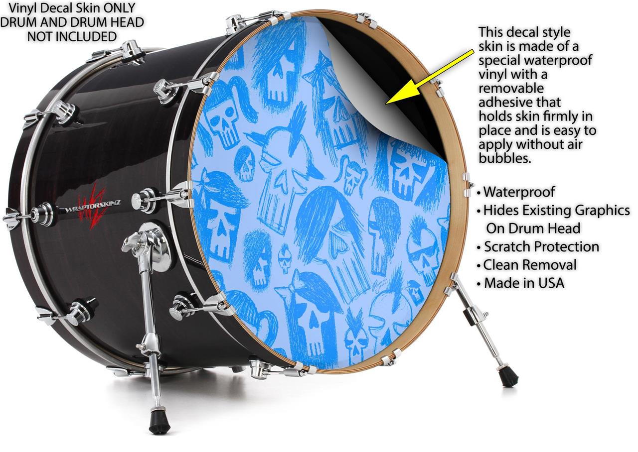 Decal Skin works with most 24" Bass Kick Drum Heads Skull Sketches Blue - DRUM HEAD NOT INCLUDED