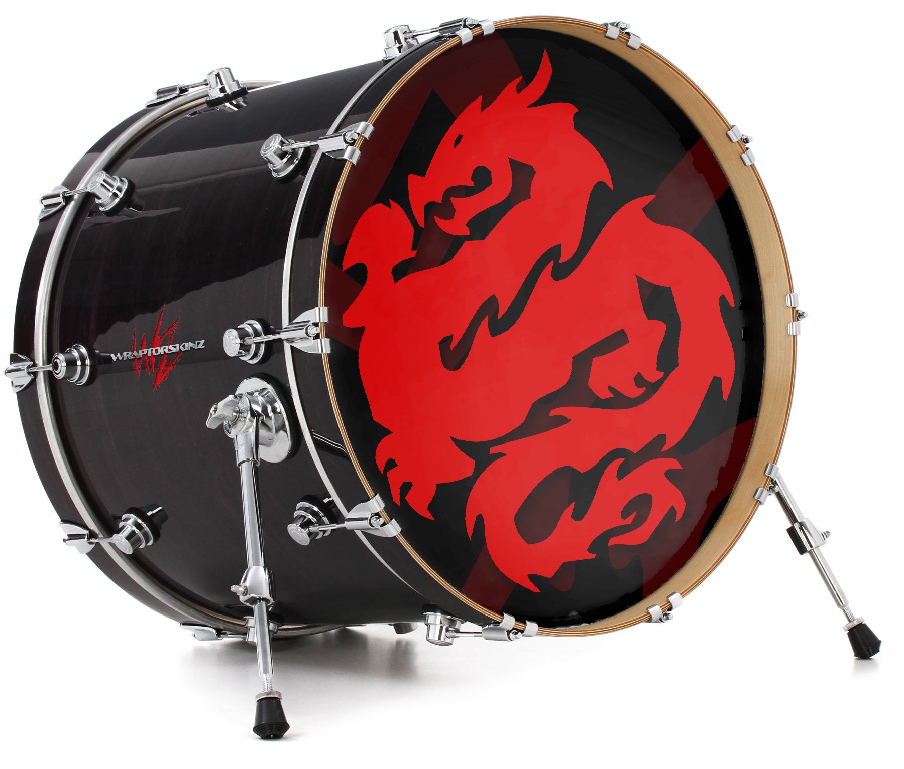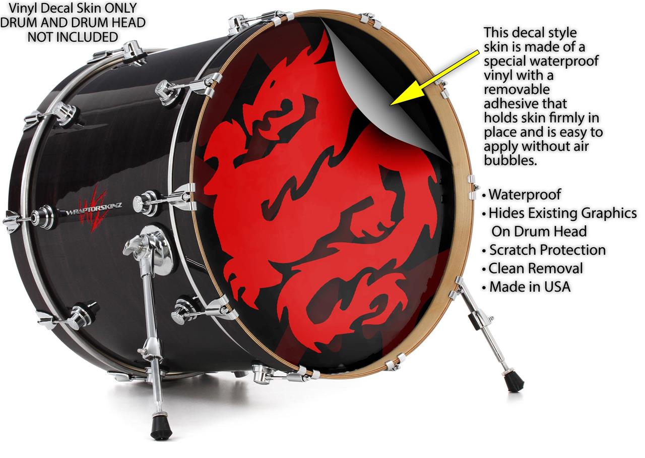 Decal Skin works with most 26" Bass Kick Drum Heads Oriental Dragon Red on Black - DRUM HEAD NOT INCLUDED
